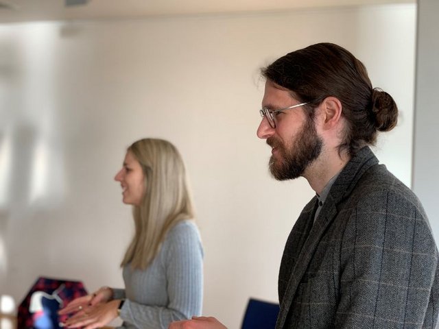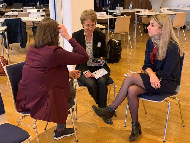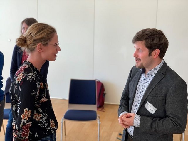 Nachdem Magdalena Knöller zunächst auf Basis ihrer Erfahrungen eine Vielzahl von wertvollen Interviewtechniken an die Mitglieder vermitteln konnte und dabei die Unterschiede und Gemeinsamkeiten von journalistischer und wissenschaftlicher Arbeit diskutiert wurden, führten die Teilnehmenden am Nachmittag des ersten Tages untereinander Oral History Interviews durch. Ziel war es, im Rahmen dieser praxisorientierten Einheit (auch, nicht nur) das eigene „Katholischsein“ zu reflektieren und miteinander zu überlegen, welche persönlichen Prägungen die Arbeit an den jeweiligen Themen beeinflussen.